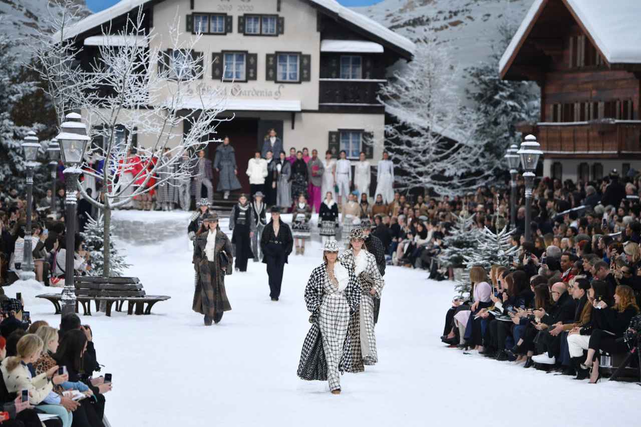 これまでカールがいくつもの壮大な世界観を表現してきた会場のグラン・パレに登場したのは、“ウィンター・ワンダーランド”をテーマにした雪山に囲まれたスノーリゾート。