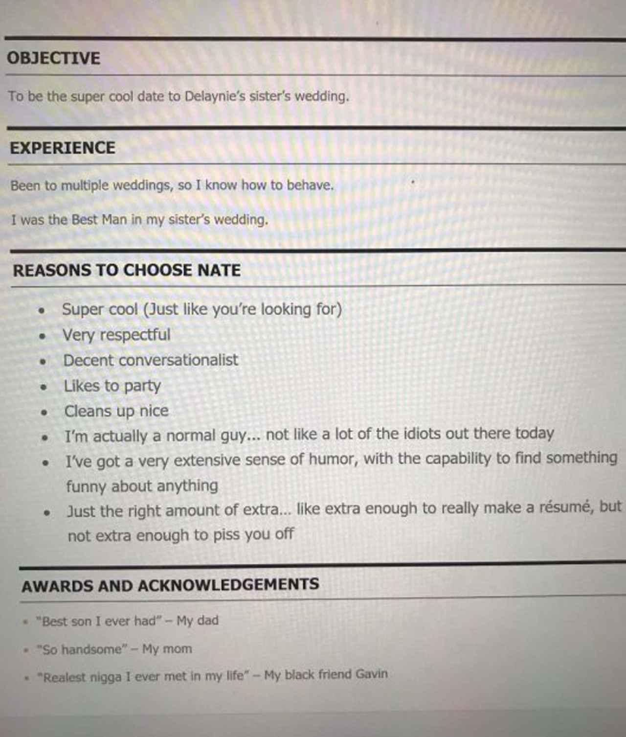 なんと数時間後、ネイトから本当に履歴書が送られてきた。