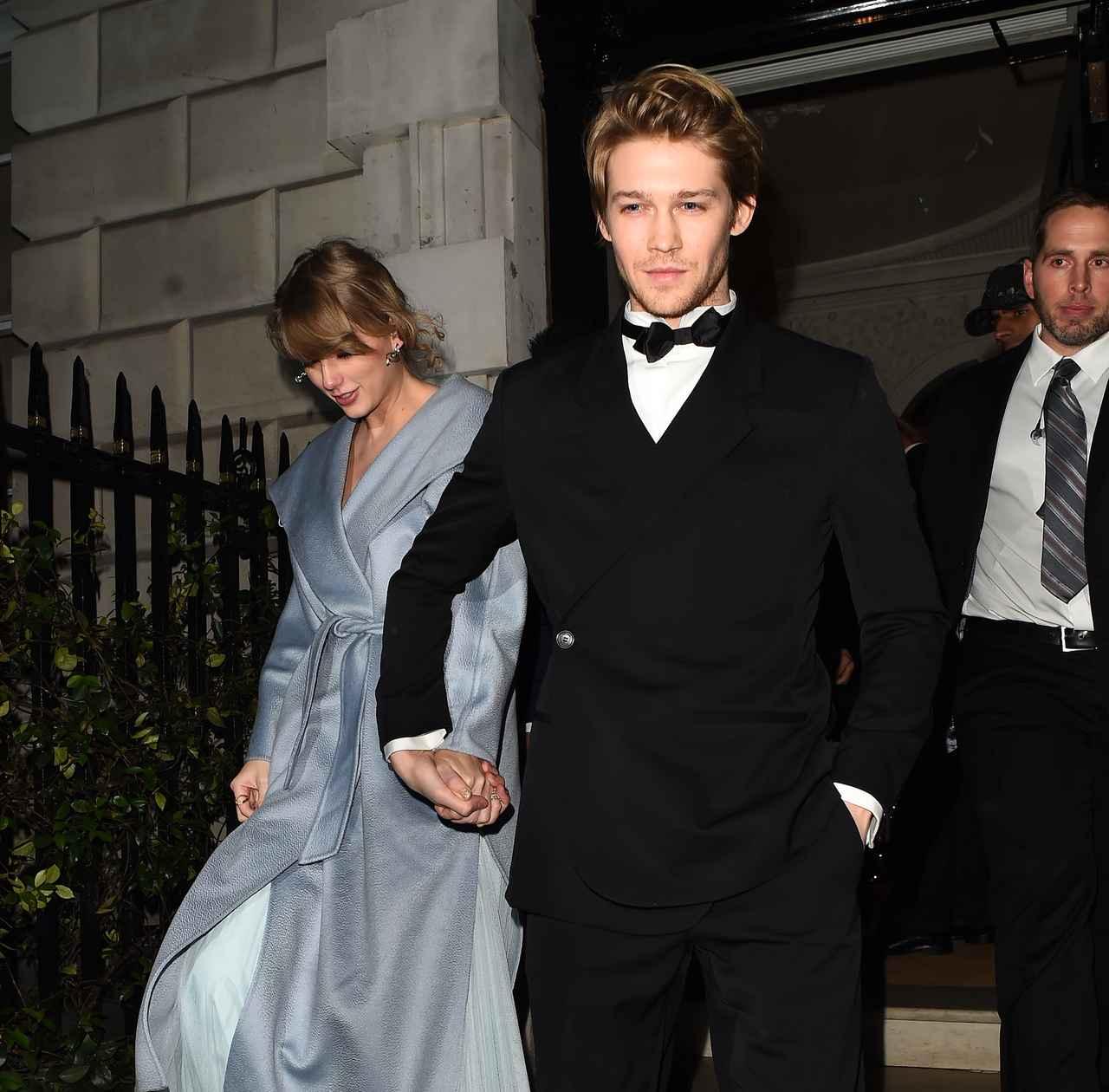 今年2月に行われた英国アカデミー賞(BAFTA)の授賞式の会場をあとにする、テイラー・スウィフトとジョー・アルウィン。