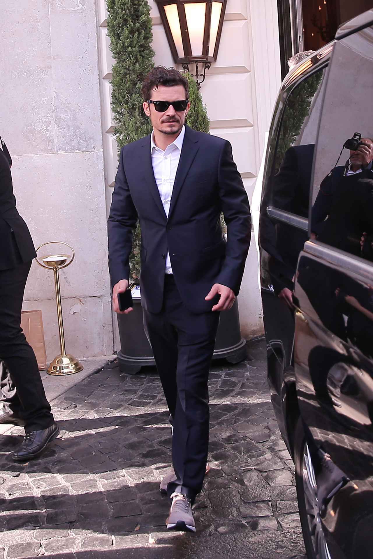 映画『パイレーツ・オブ・カリビアン』シリーズで世界的に人気を博す俳優オーランド・ブルームは、プライベートでローマへと訪れた際に、ネイビーのスリムなスーツの足元に、ナイキ エアマックス 270でカジュアルダウンさせたスタイルを披露。
