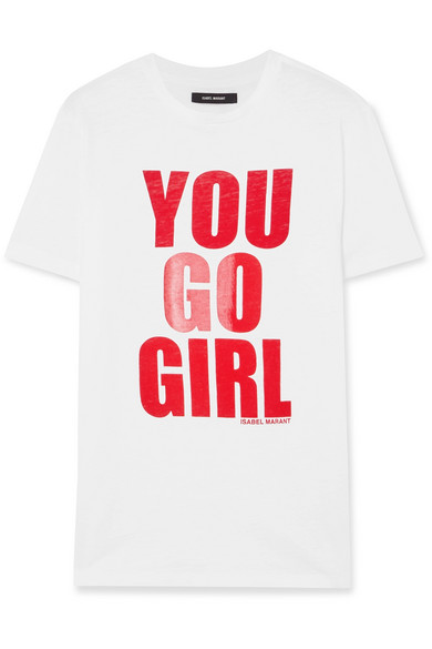「You Go Girl」と前面に大きくデザインされたイザベル・マランのTシャツは、いつものブランドとは違い大胆なデザイン。