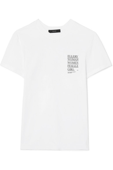 エリーのTシャツには胸元にさりげなく「ウーマン、フィーメール、ガール」という文字がデザインされている。