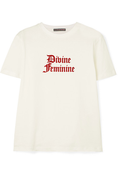 エル・ファニングやジゼル・ブンチェンも愛用するアレクサ・チャンの国際女性デーのTシャツは、「Divine Feminine(聖なる女性)」という文字が。