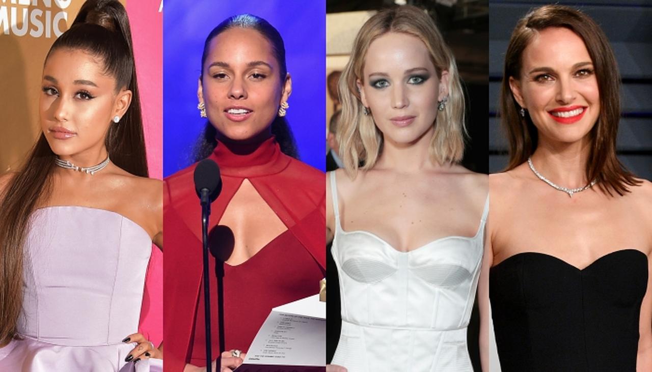 左から:アリアナ・グランデ、アリシア・キーズ、ジェニファー・ローレンス、ナタリー・ポートマン