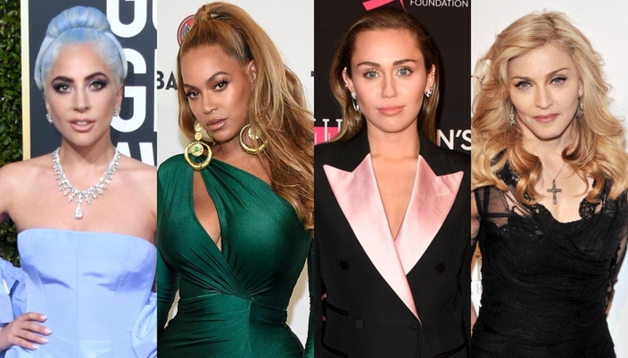 左から:レディー・ガガ、ビヨンセ、マイリー・サイラス、マドンナ