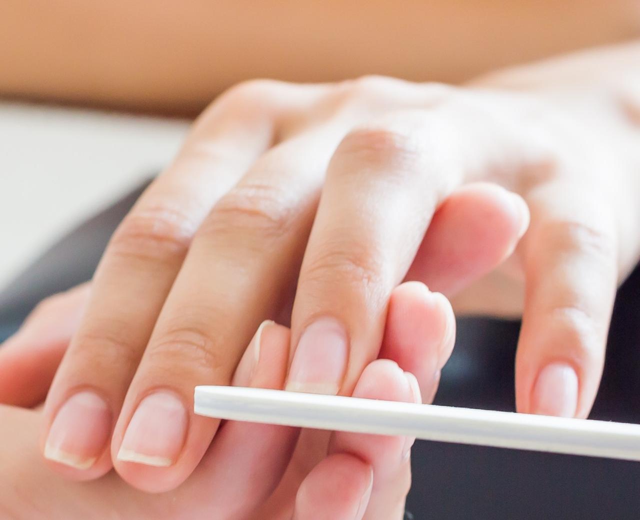 ちなみに、ネイルカラーがはがれるときは、物や何かに触れる機会が多い爪の先端部分からという人が多いはず。爪の表面だけではなく、爪の先端の切り口のエッジの部分にも軽くやすりをかけて整えて。