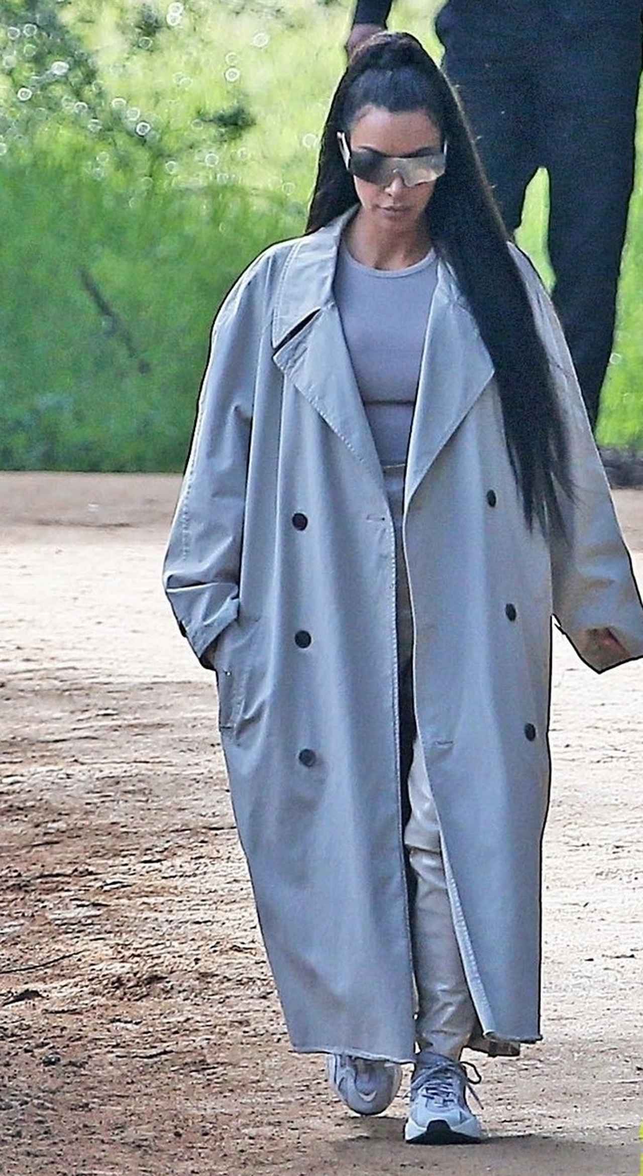 トレンドセッターのリアリティスター、キム・カーダシアンは、バレンシアガ(Balenciaga)の新作フルレングストレンチにスニーカーを合わせた旬コーデ。