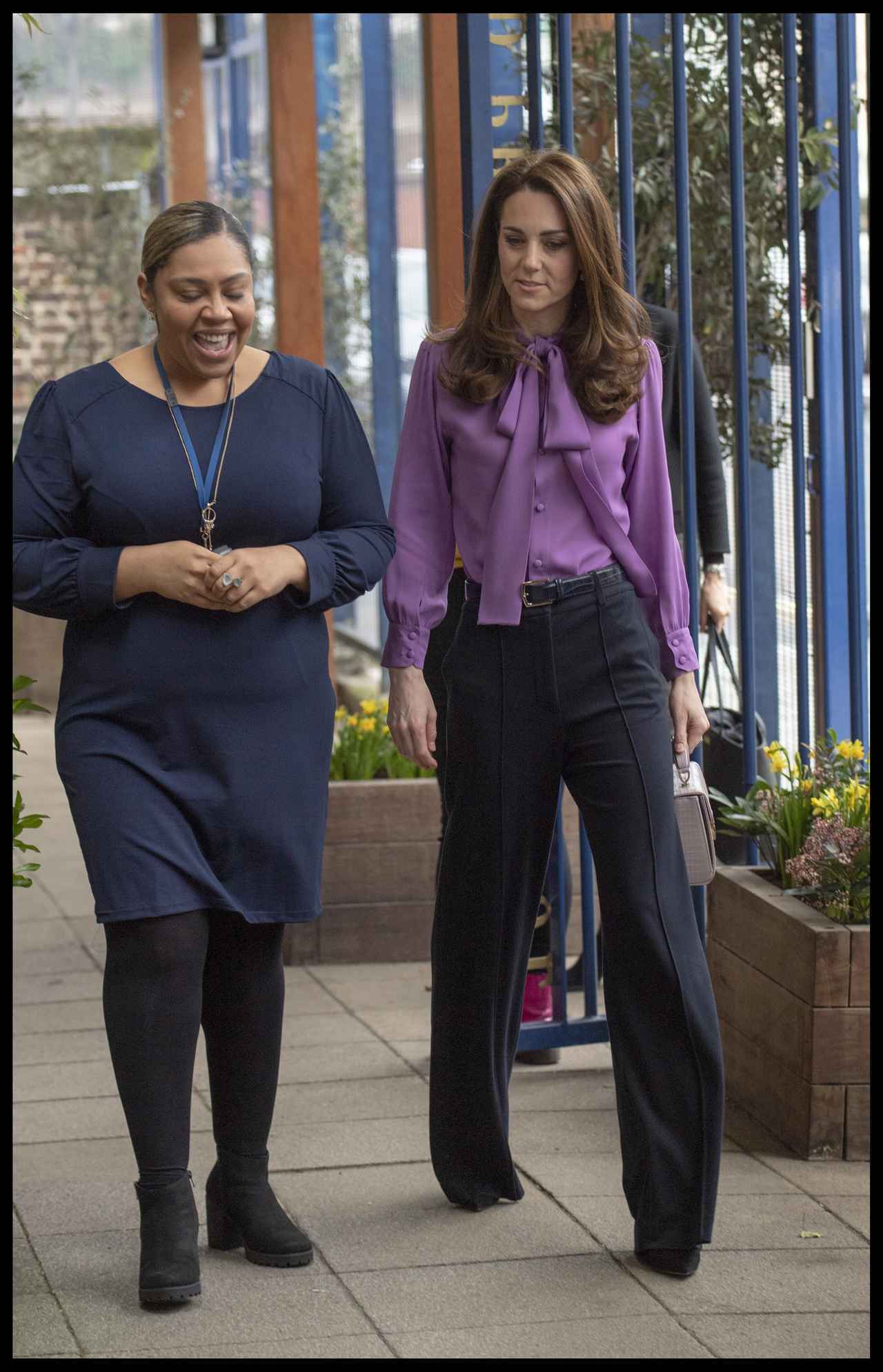 子育てを支援するセンターを訪れた、イギリス王室のキャサリン妃が着用していたシャツに注目。(フロントロウ編集部)
