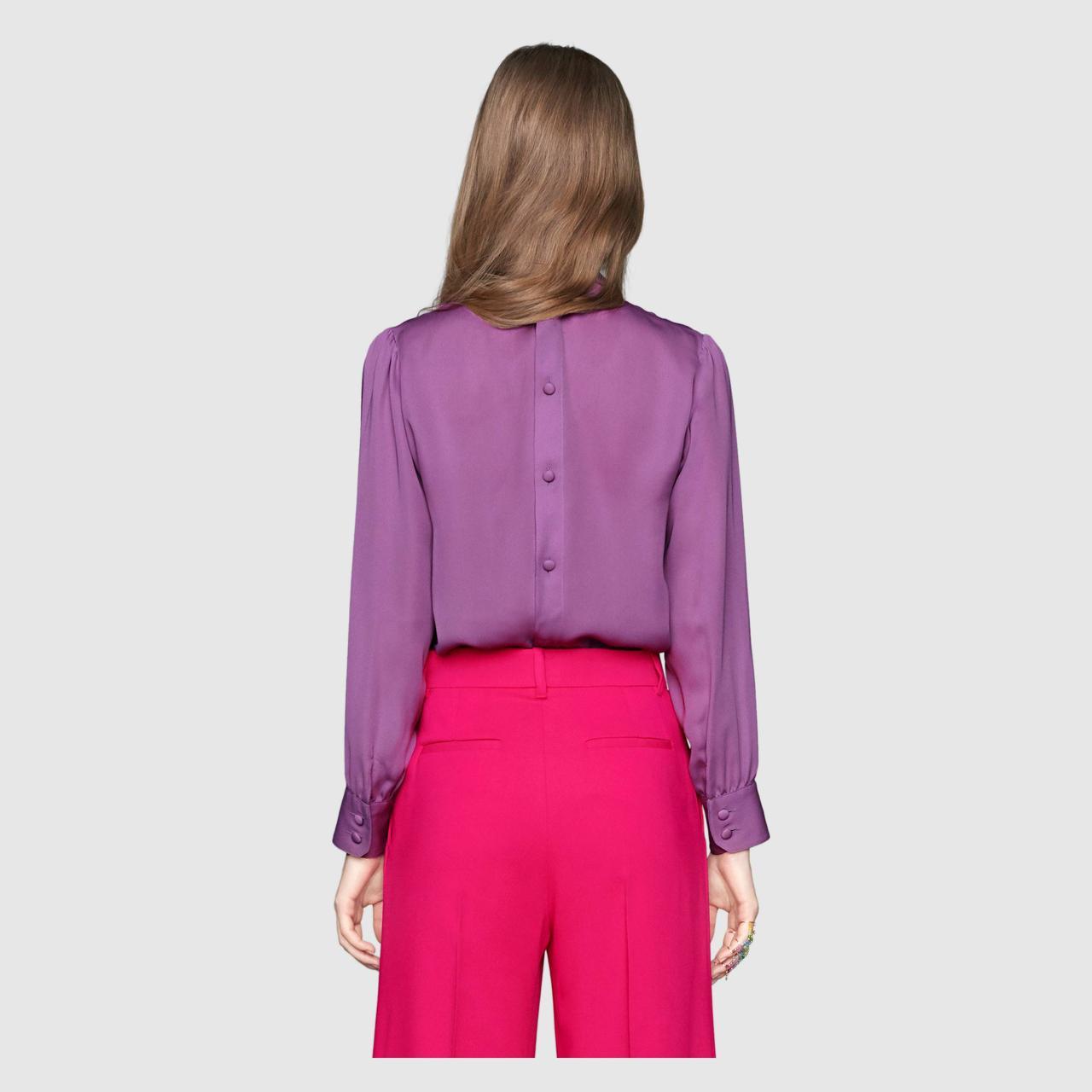 このシャツは、グッチ(Gucci)のアイテムで、後ろにボタンがくるのが本来の着方。