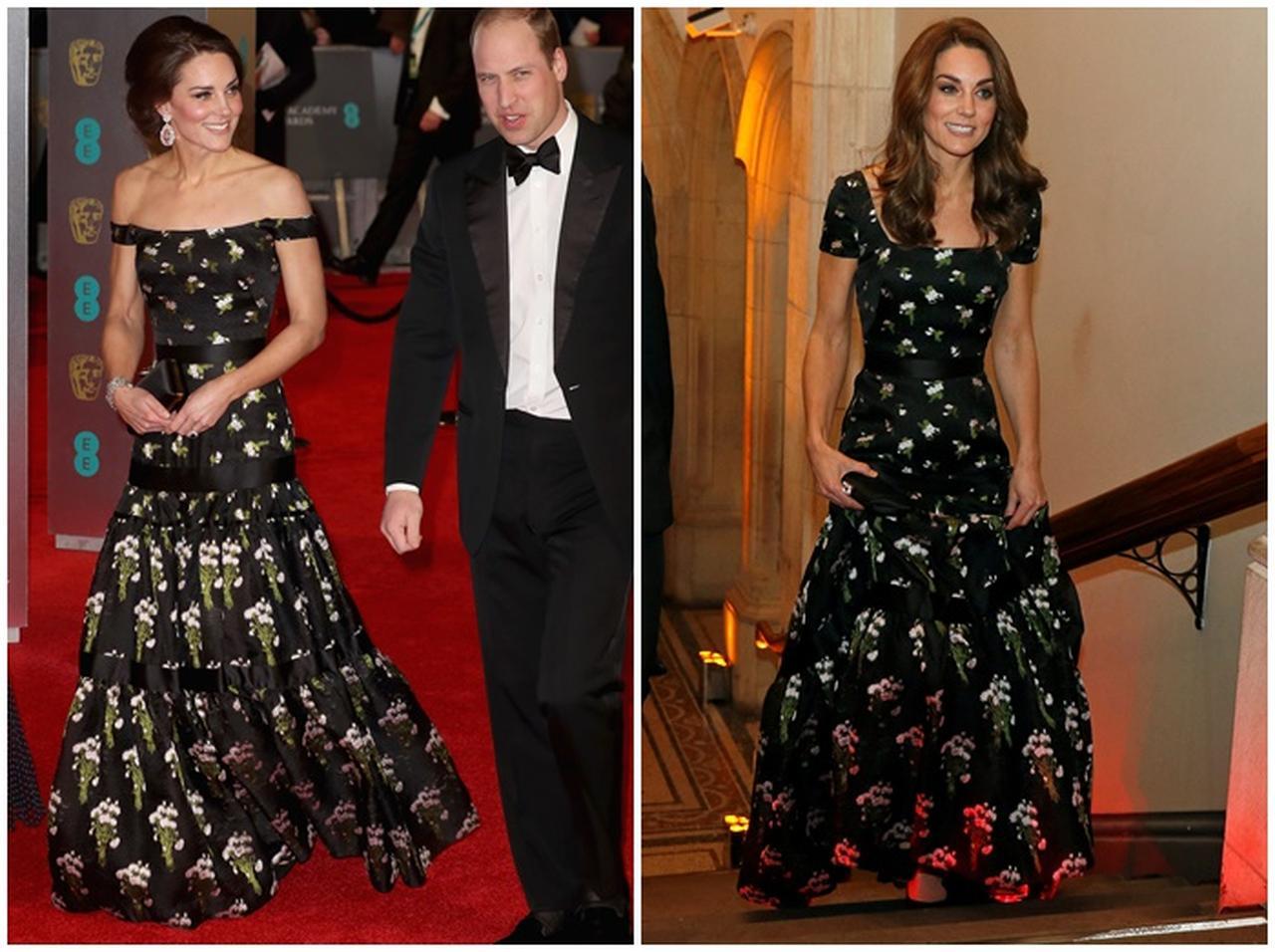 実はこのフローラルドレスは、2017年にも着用していたことが判明。キャサリン妃は2年前に夫のウィリアム王子と一緒に英国アカデミー賞に参加した時にも全く同じアレキサンダー・マックイーンのドレスを着用した。