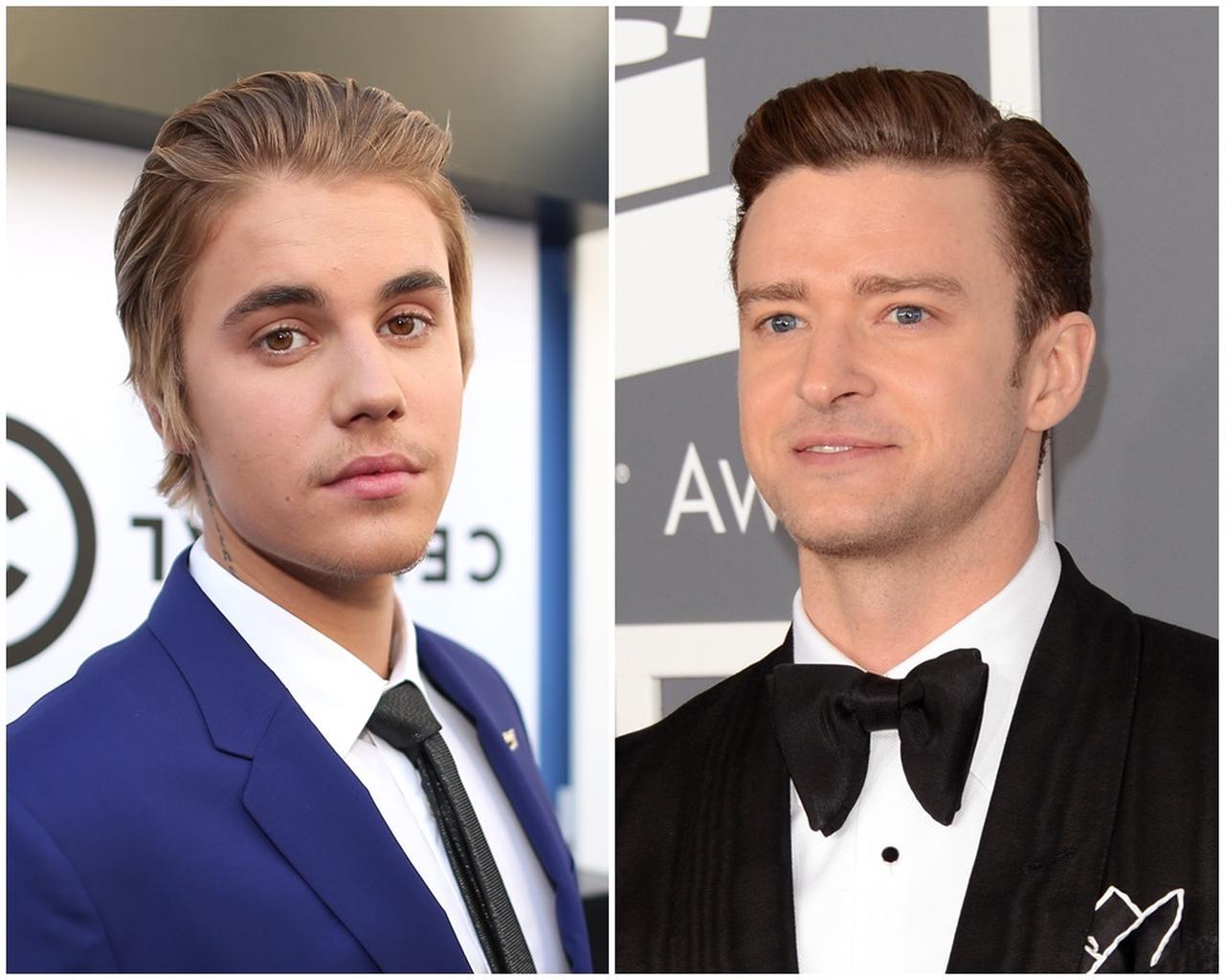 ジャスティン・ビーバー(左)とジャスティン・ティンバーレイク(右)。