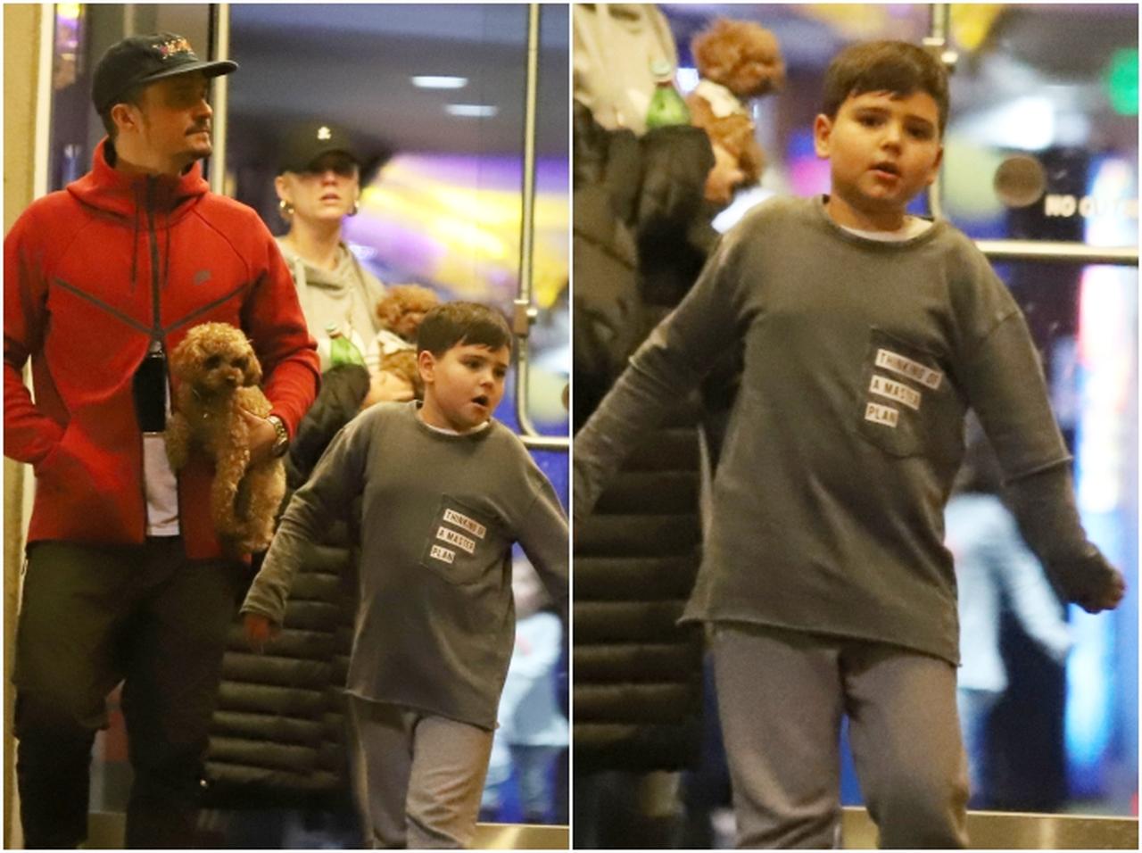 今年2月、父オーランドとその婚約者でシンガーのケイティ・ペリーと一緒にボーリングに出かけるフリン君。