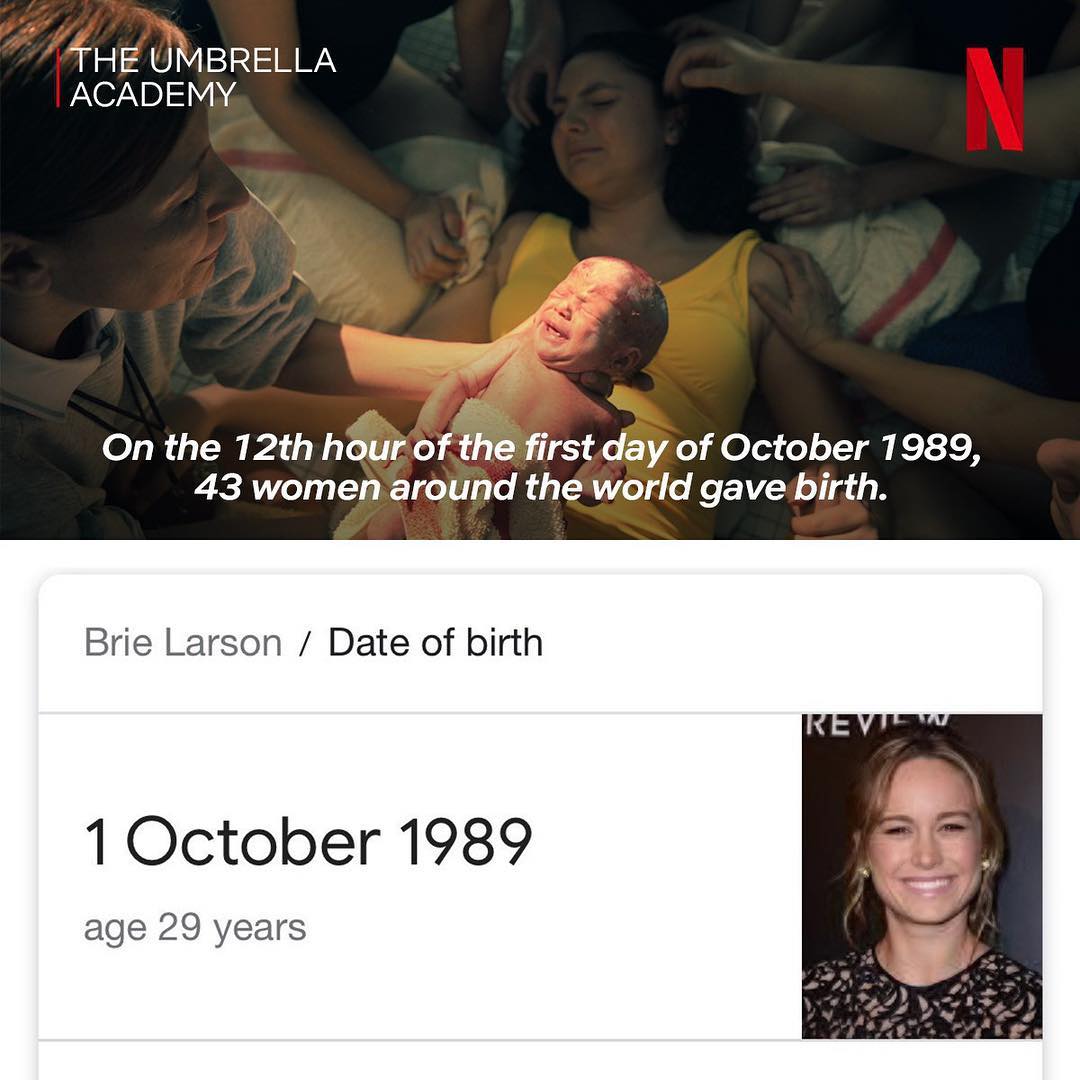 比Netflixが指摘したのが、ブリーの誕生日と、Netflixのヒーロードラマ『アンブレラ・アカデミー』のヒーローたちの誕生日がまったく一緒であるということ。