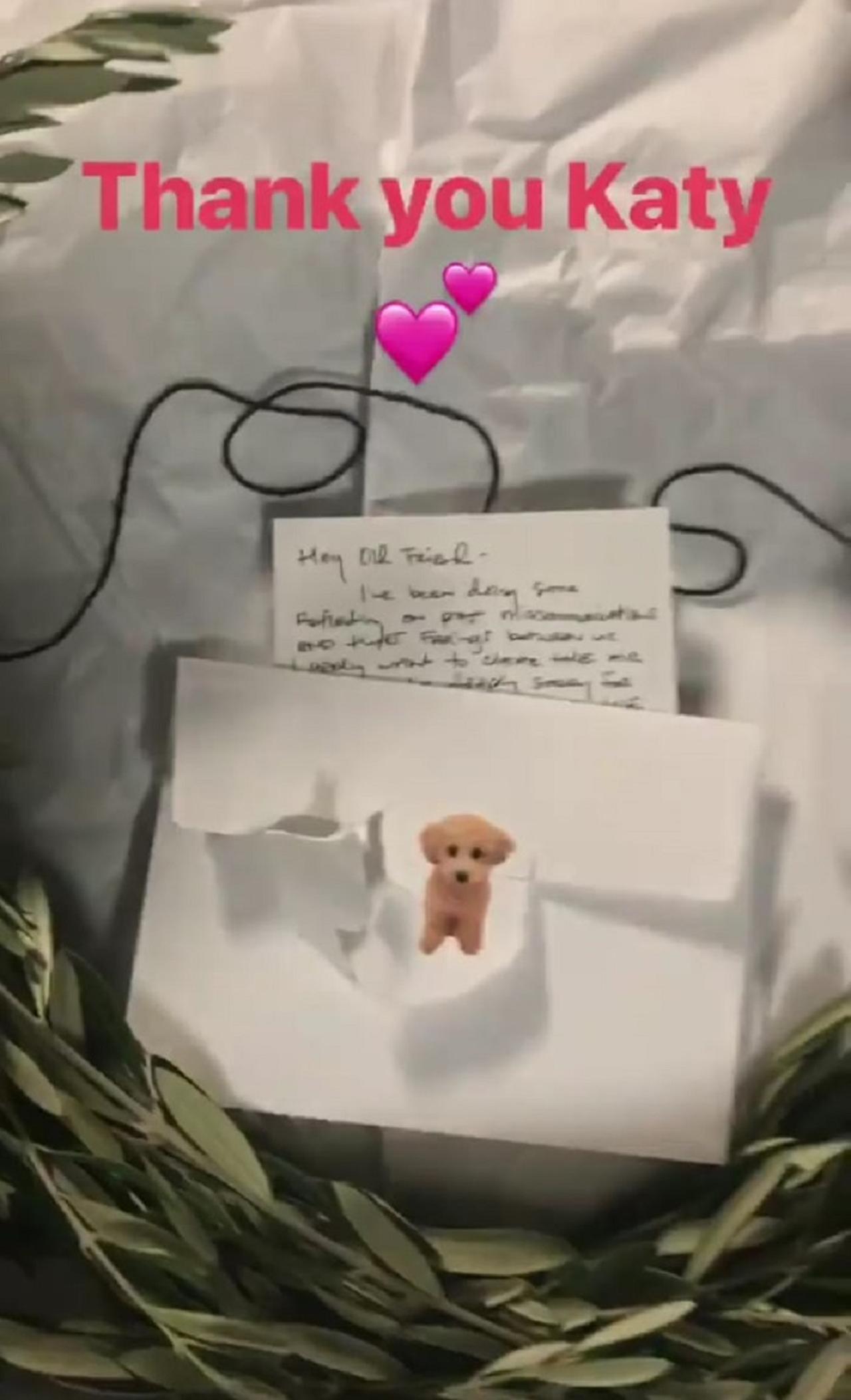 テイラーがケイティから贈られた平和の象徴である“オリーブの葉”と直筆レターを公開し「ツアーの楽屋についたら本物のオリーブの枝があった。私にとってすごく意味のあることよ」とケイティへの感謝のコメントをしたことで和解が成立。©Taylor Swift / Instagram