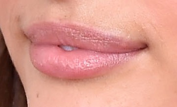 リップは、大人っぽくてきちんとした印象を与えるローズピンク。リップの輪郭はすこし肌になじませるようにしていて、ナチュラルに仕上げている。