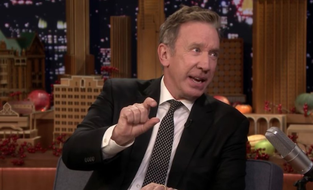 キアヌが声を担当したキャラのサイズを指で表すティム・アレン。©NBC Universal
