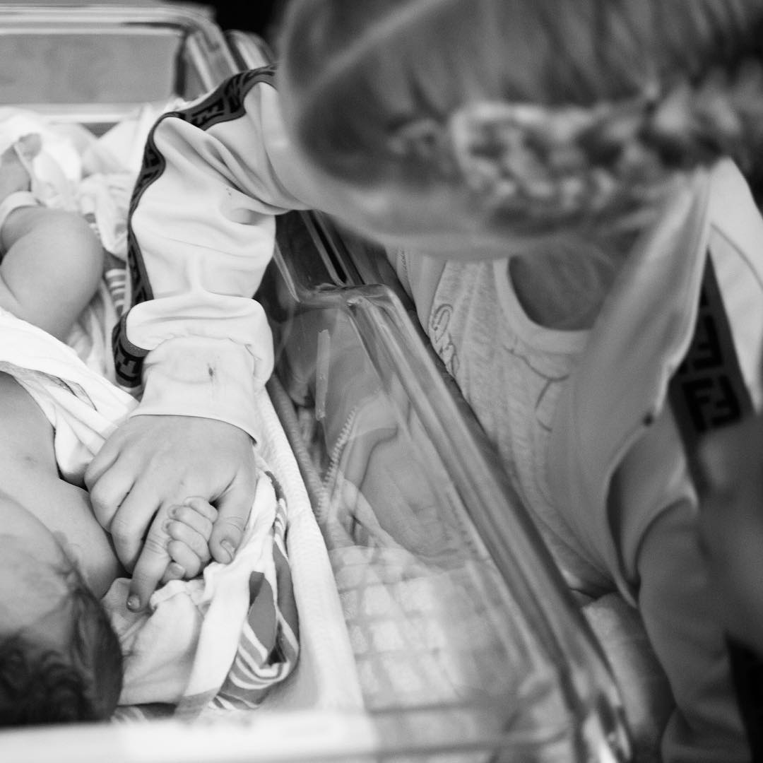 出産を報告したジェシカのSNSには、長女マックスウェルちゃんが生まれたばかりのバーディーちゃんの手を握る姿が写されている。