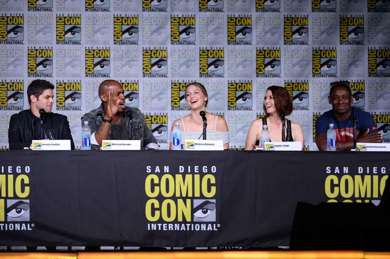 後ろに映るセットの電気がチカチカしていることもあって、まるでメリッサのショータイムのよう。マーシャン・マンハンターを演じるデヴィッド・ヘアウッドが、そんなメリッサを爆笑しながら見守っている様子も映されており、撮影現場が和気あいあいとした場であることが伺える。