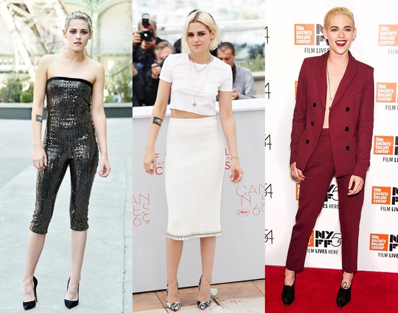 ボーイッシュな印象がある映画『チャーリーズ・エンジェル』の俳優クリステン・スチュワートは右肩を左肩よりも少し高くし、足を肩幅に開いて腰に絶妙な角度をつけたポーズが多い。静止しているのにもかかわらず、躍動感があるように見えるのがポイント。