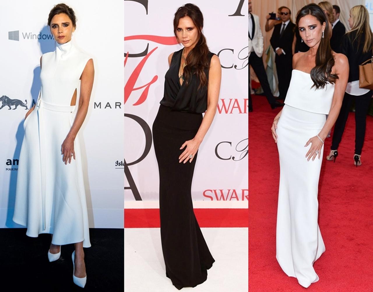 ファッションデザイナーとして活躍するヴィクトリア・ベッカムは、片脚を前に出し、後ろ足に重心をかけた「S字カーブ」を描くような絶妙ポーズがお得意。ほとんどの場合、左手は指先を開いて太ももの上にそっと置かれている。