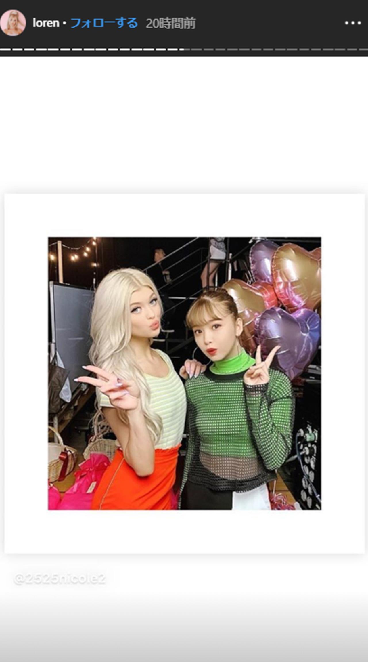 ローレンは、今回の来日でティーン向けのフェス「超十代 – ULTRA TEENS FES – 2019@TOKYO」に登場して、4月5日にリリース予定の新曲「オプションズ」をいち早く披露。10代に絶大な人気を誇る人たちが登場した同フェスには、にこるんこと藤田ニコルも参加しており、ローレンは自身のインスタグラムに2ショットをアップして人気若手スターたちの共演が実現した。