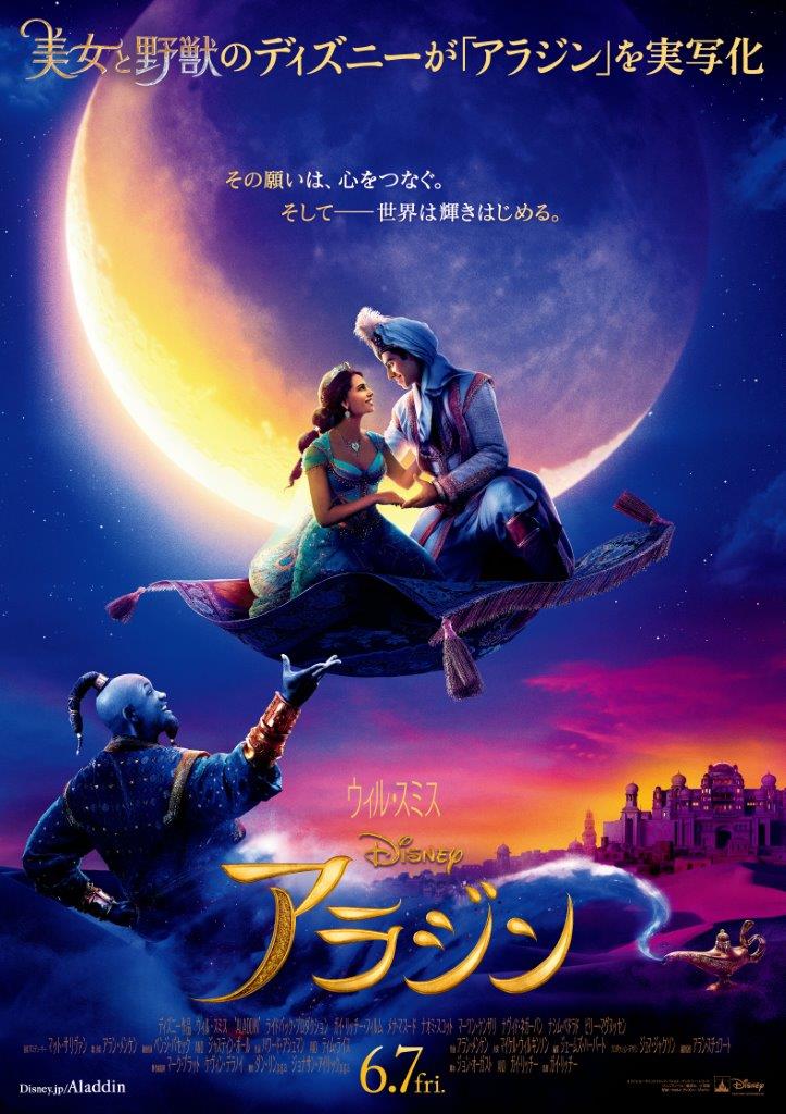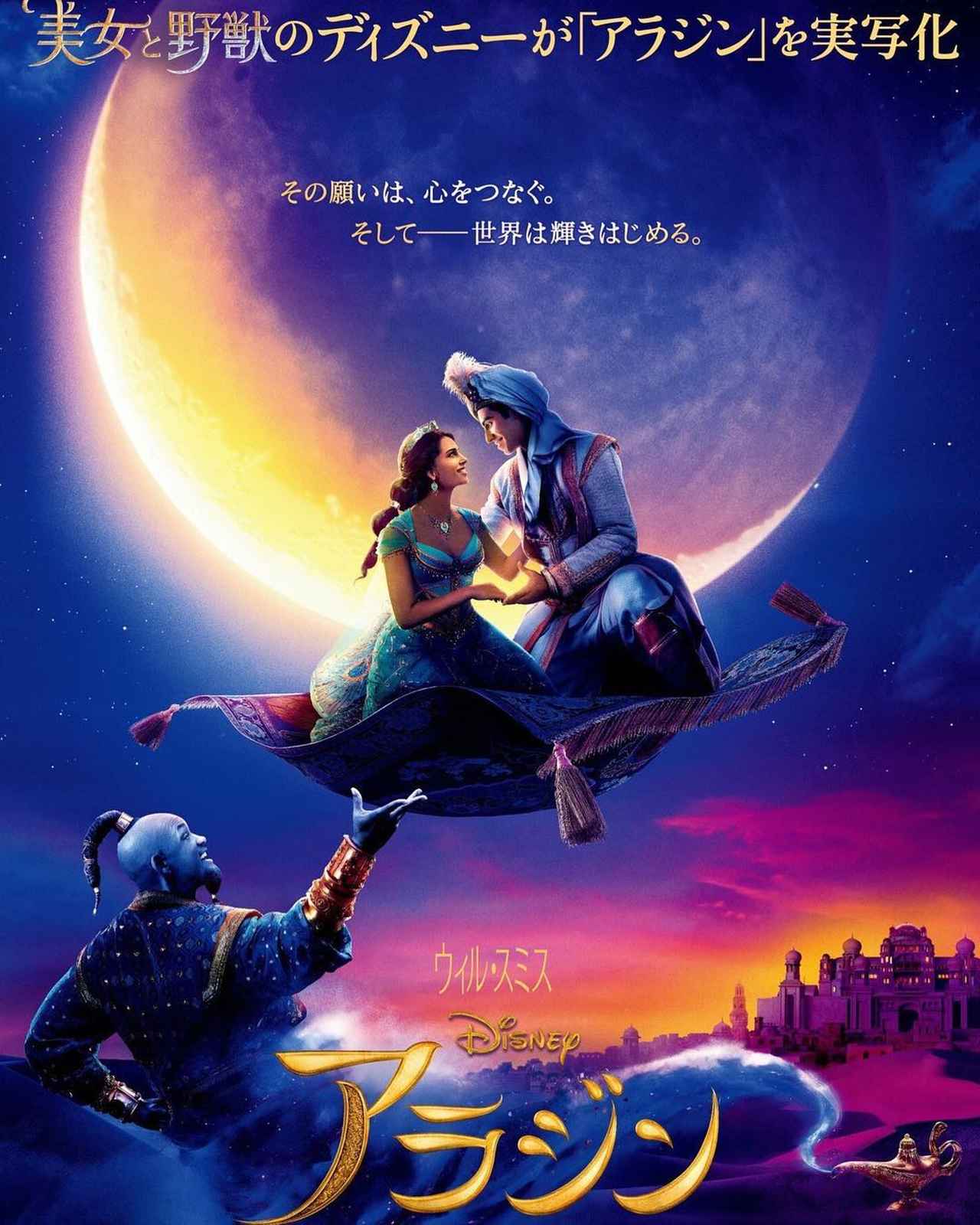 魔法の絨毯に乗ったジャスミンとアラジンが「ホール・ニュー・ワールド」を歌う名シーンがロマンチックに再現されたポスター画像は、海外メディアでも大きく取り上げられた。