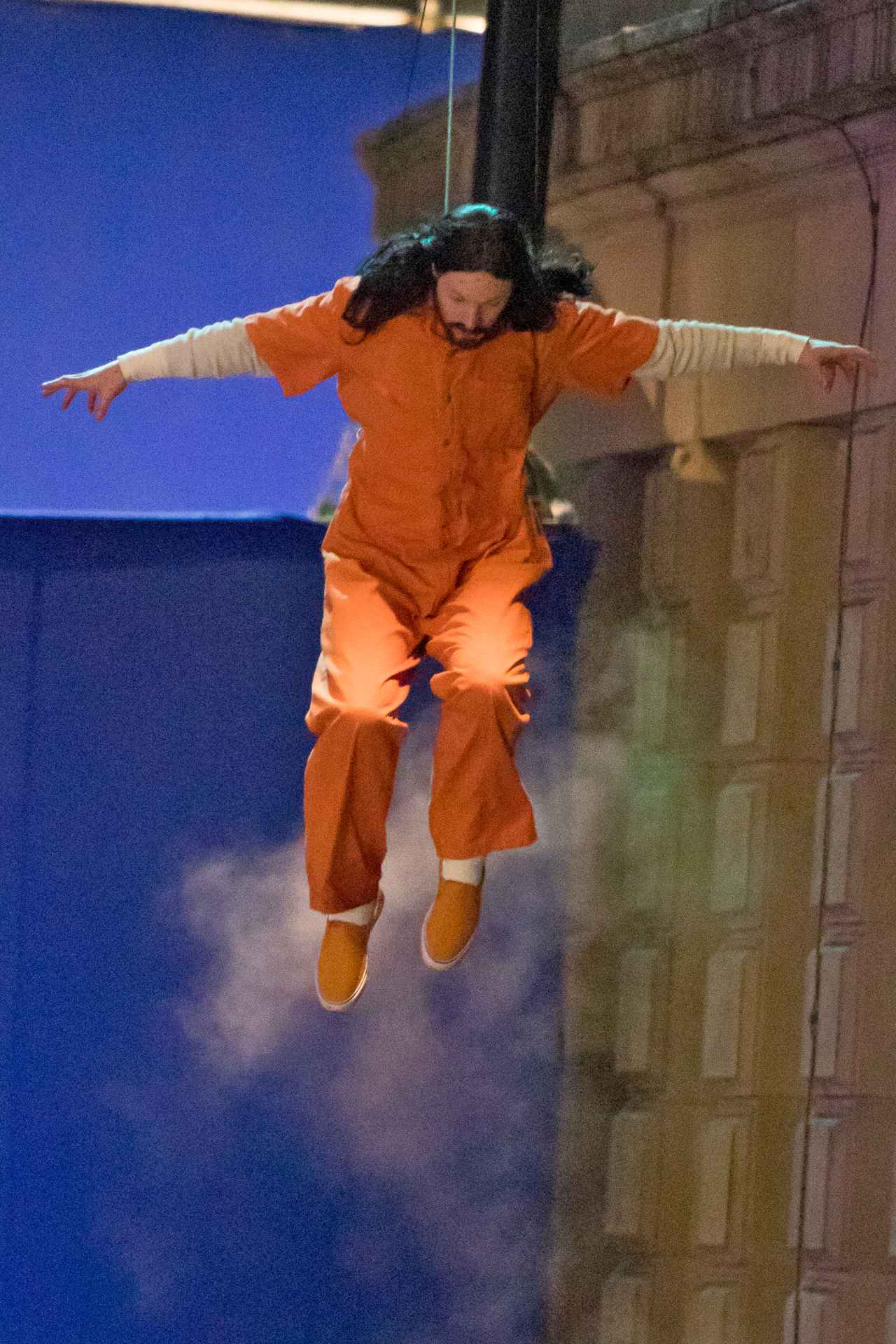 英ロンドンで行なわれている撮影では、ジャレッド演じるモービウスがブラックのフードを被り松葉杖のようなもので体を支えながら歩く姿が見られ、さらにはオレンジの囚人服を着たジャレッドや、ジャレッドのスタントマンが建物から飛び降りる姿もキャッチされた。