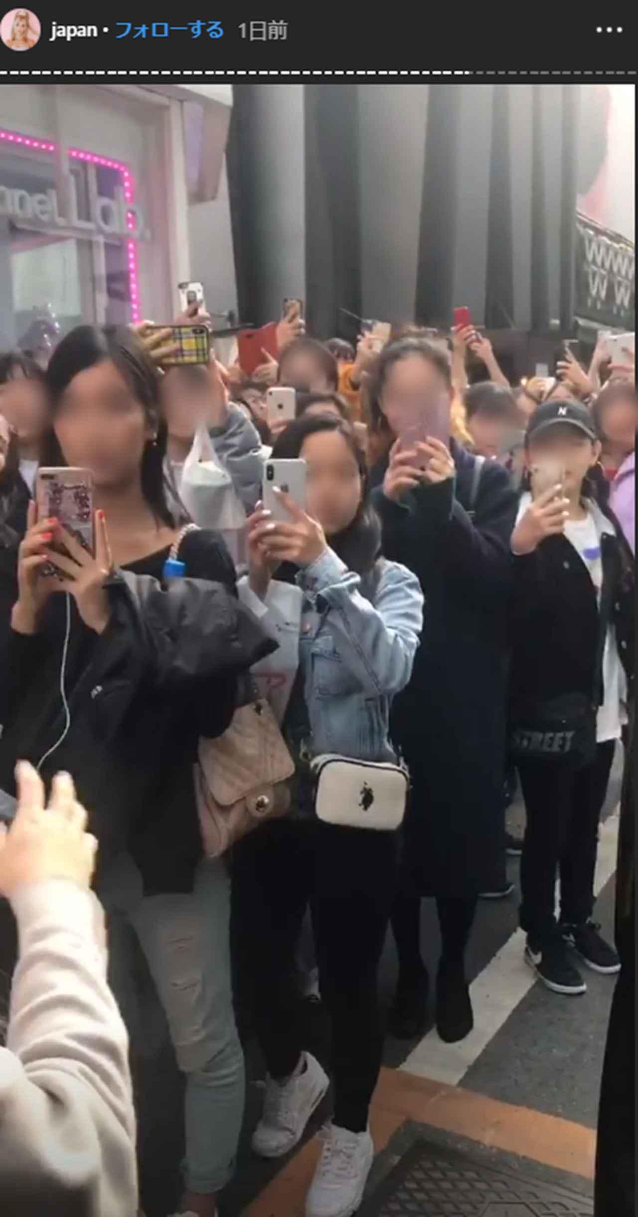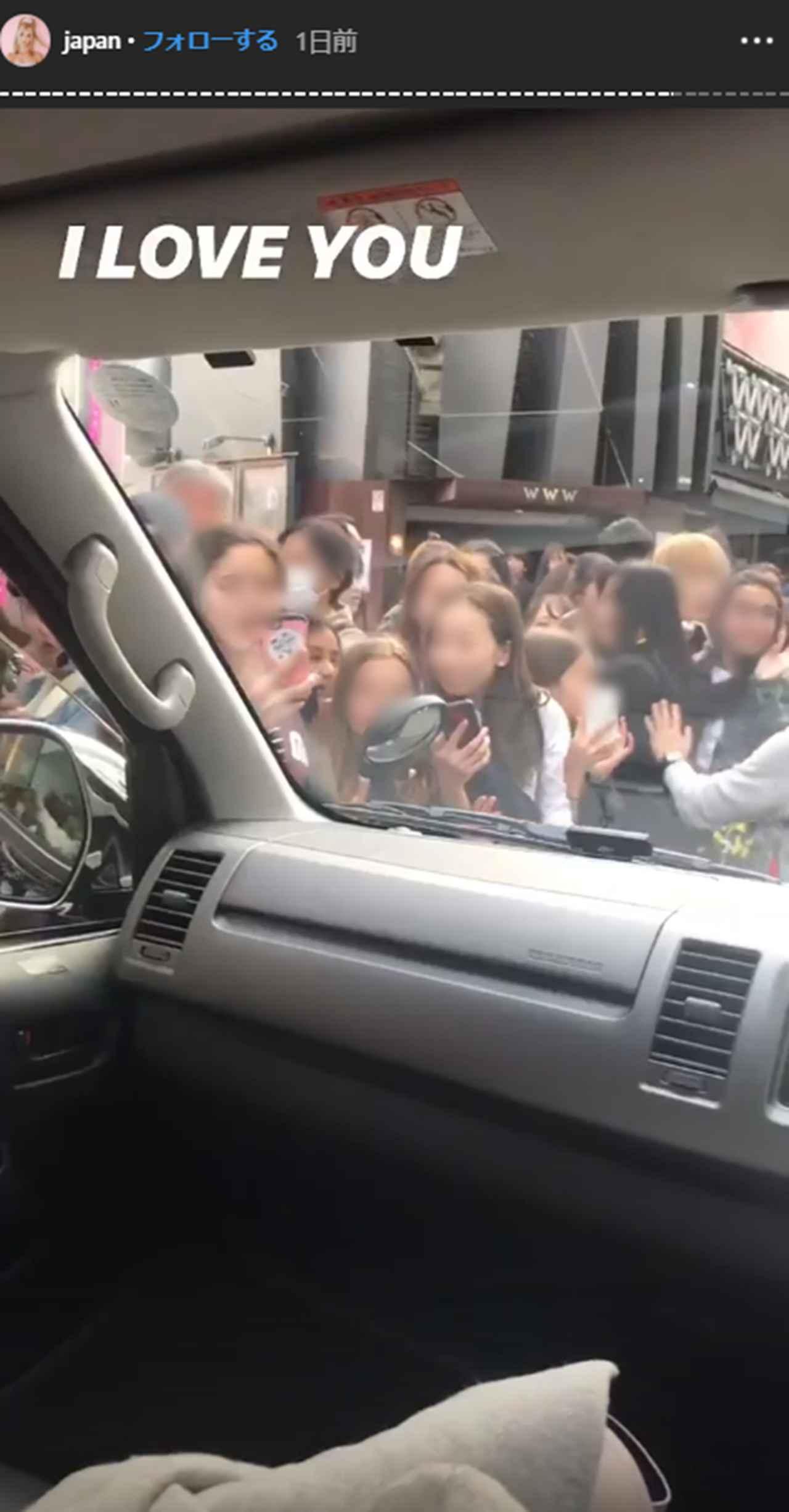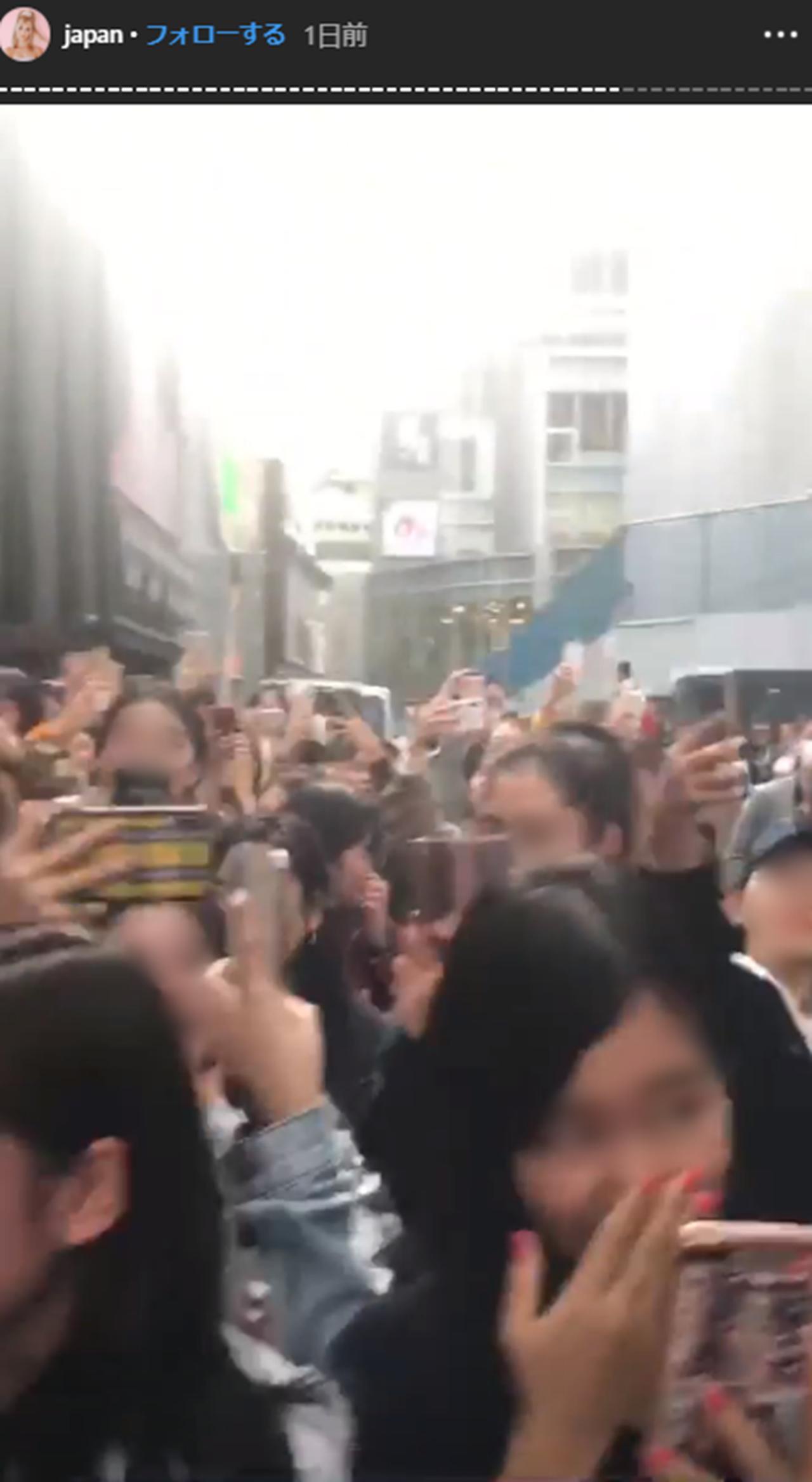 ファンは車周辺だけではなく、奥の方までずらりと待ち構えており、彼女の人気ぶりがうかがえる。