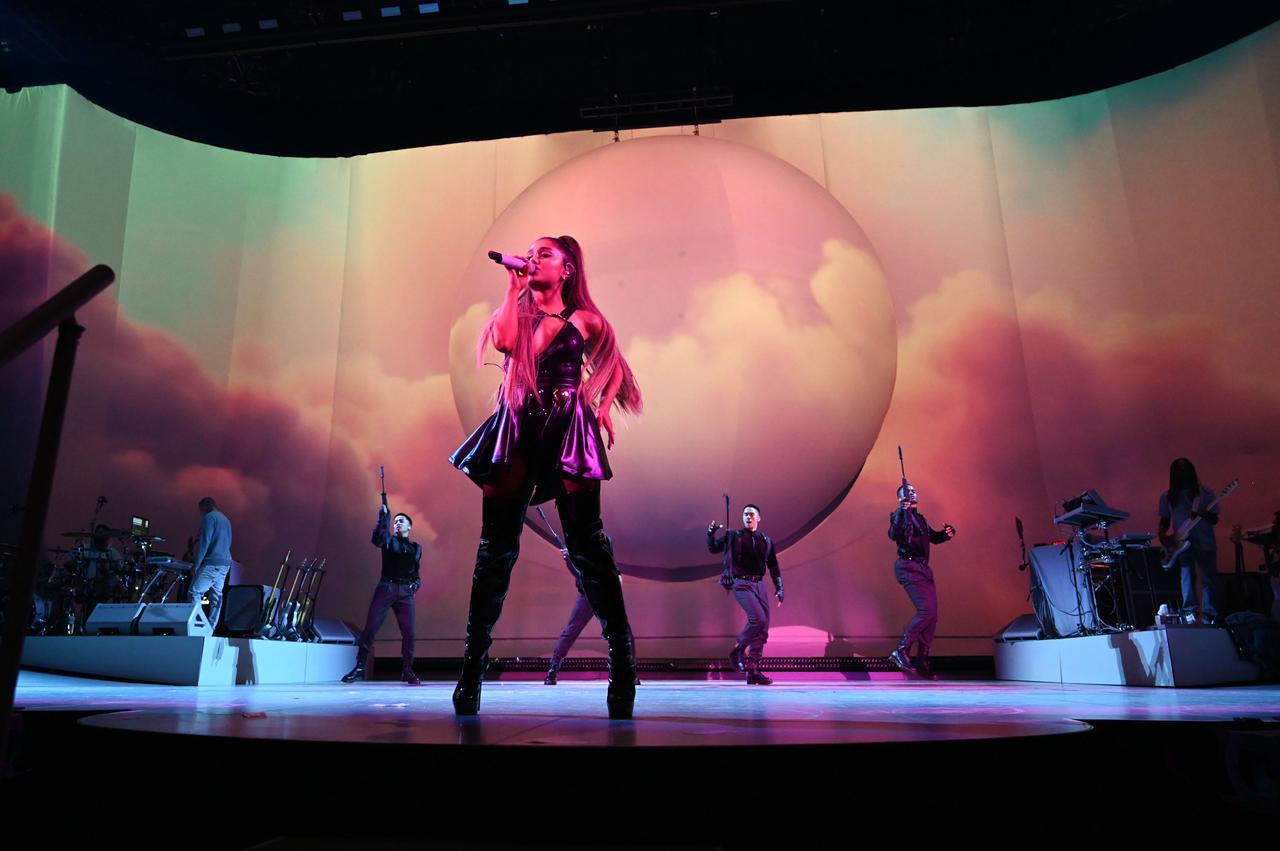 それぞれのスタイルは、ジュゼッペ・ザノッティ特有のエッジと、アリアナのビジョンを融合したもので、ステージでの履き心地のためにプラットフォームで安定感のあるヒールとなっている。