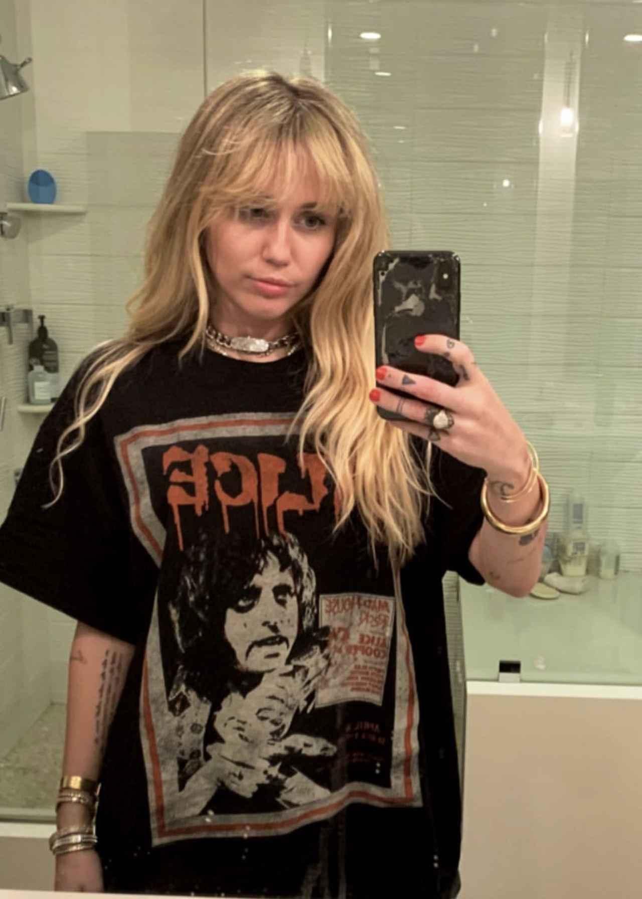 現役時代より少しワイルドになったマイリーは、ロックTを着て「ハンナはパンクになりました」というコメントつきでセルフィーも公開した。