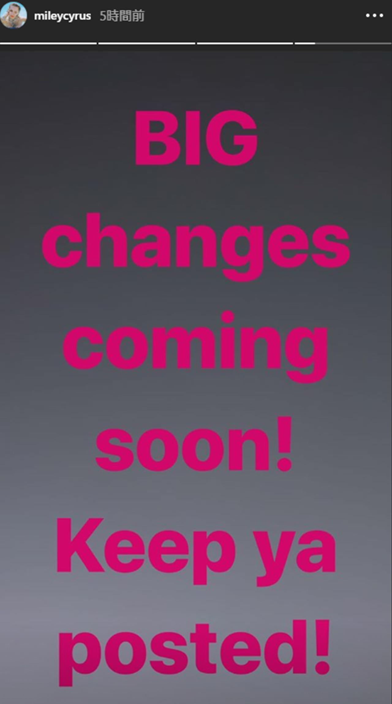ちなみにマイリー、今回のイメチェンをする数日前にインスタグラムのストーリーに「近々大きな変化があるよ!お楽しみに!」とコメントしていた。