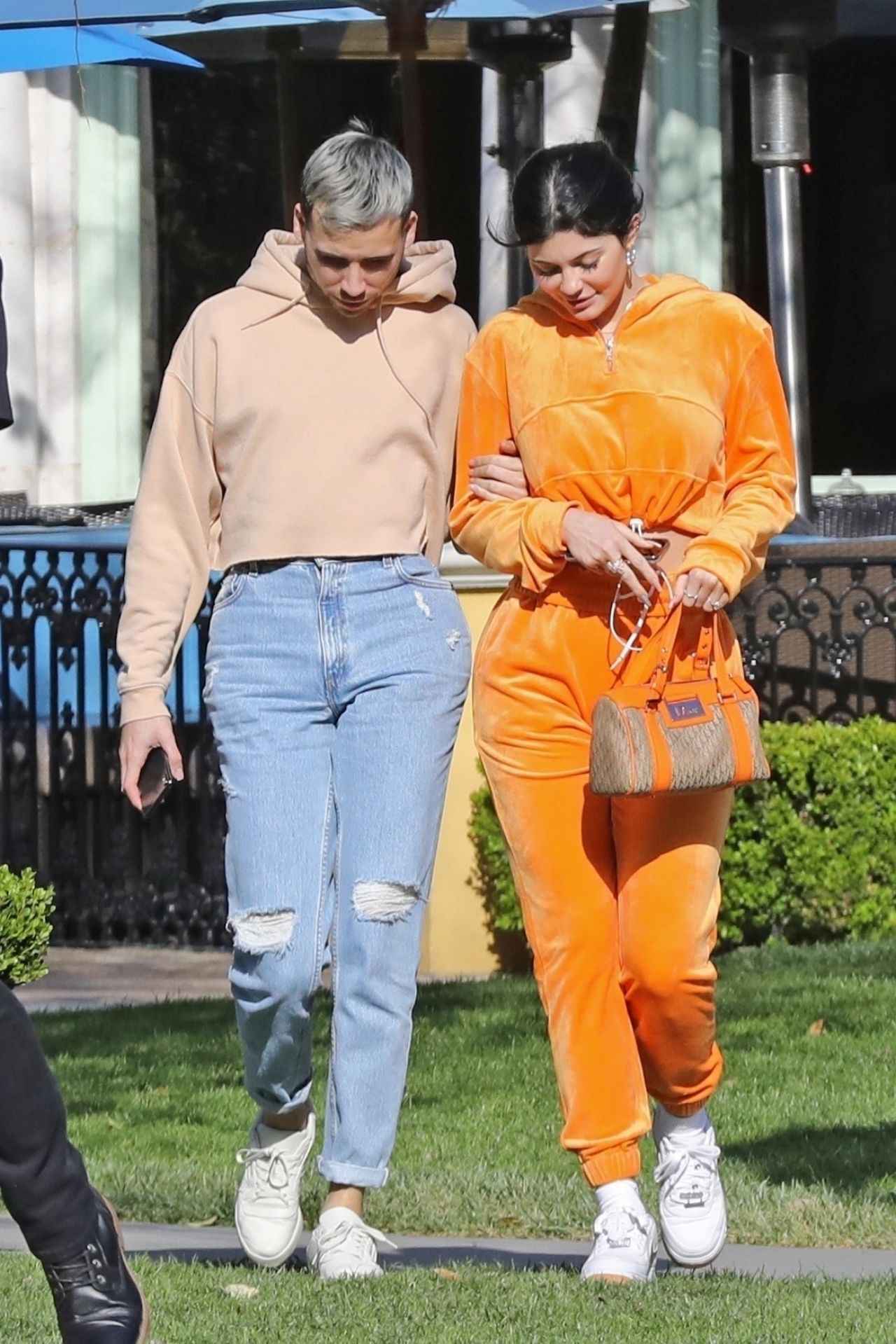 オレンジのジャージをセットアップで着用したカイリー・ジェンナー と、カイリーのメイクアップアーティストのアリエルが外出する姿をキャッチ。