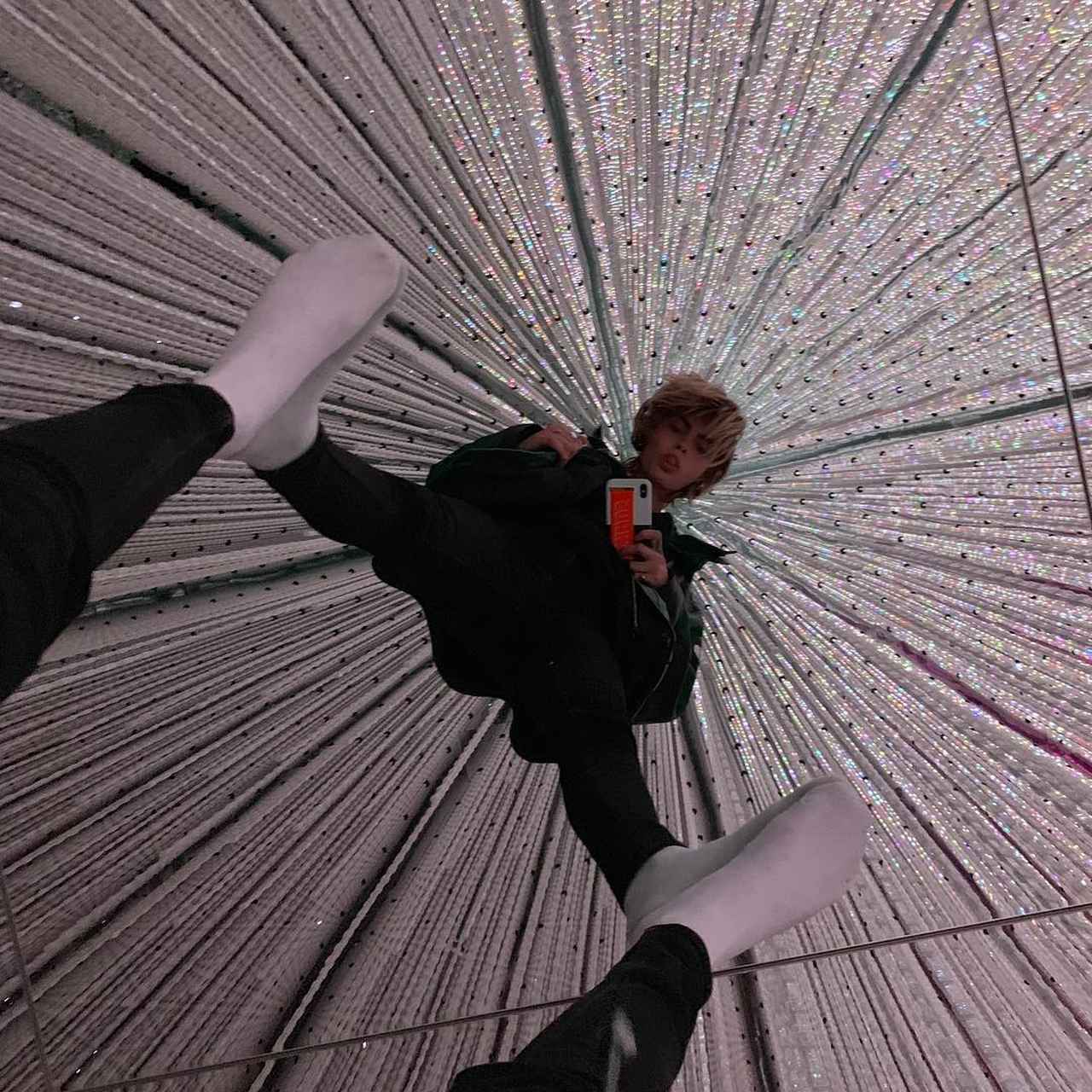 豊洲にあるチームラボ プラネッツにやってきたカーラは、イルミネーションで飾られた空間で撮った写真を複数枚インスタグラムに投稿して来日していることを報告した。
