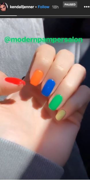 ケンダル・ジェンナーの単色フルカラー×「レインボー・ネイル」