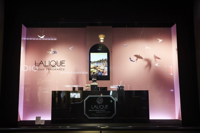 このコンセプトショップは、ラリックが400周年を迎えた自社のワイナリーに創り上げたフランス・ボルドーのラリックホテル「シャトーラフォリペラゲ」をテーマにした、体感型のライフスタイル・ショップで、およそ120㎡の贅沢な空間に、ラリックのデコラティブ、インテリア、家具、ホームフレグランス、ワインを取り揃える。