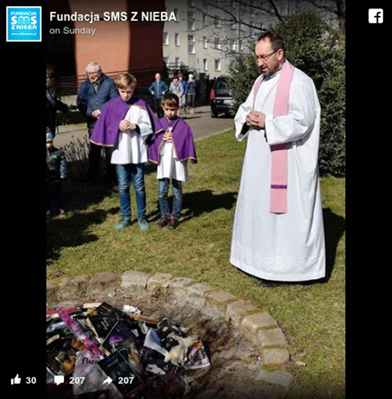 ポーランドの都市グダニスクのカトリック教会の団体Fundacja SMS NIEBAが、『ハリー・ポッター』の小説などを燃やしている写真をフェイスブックに投稿した。