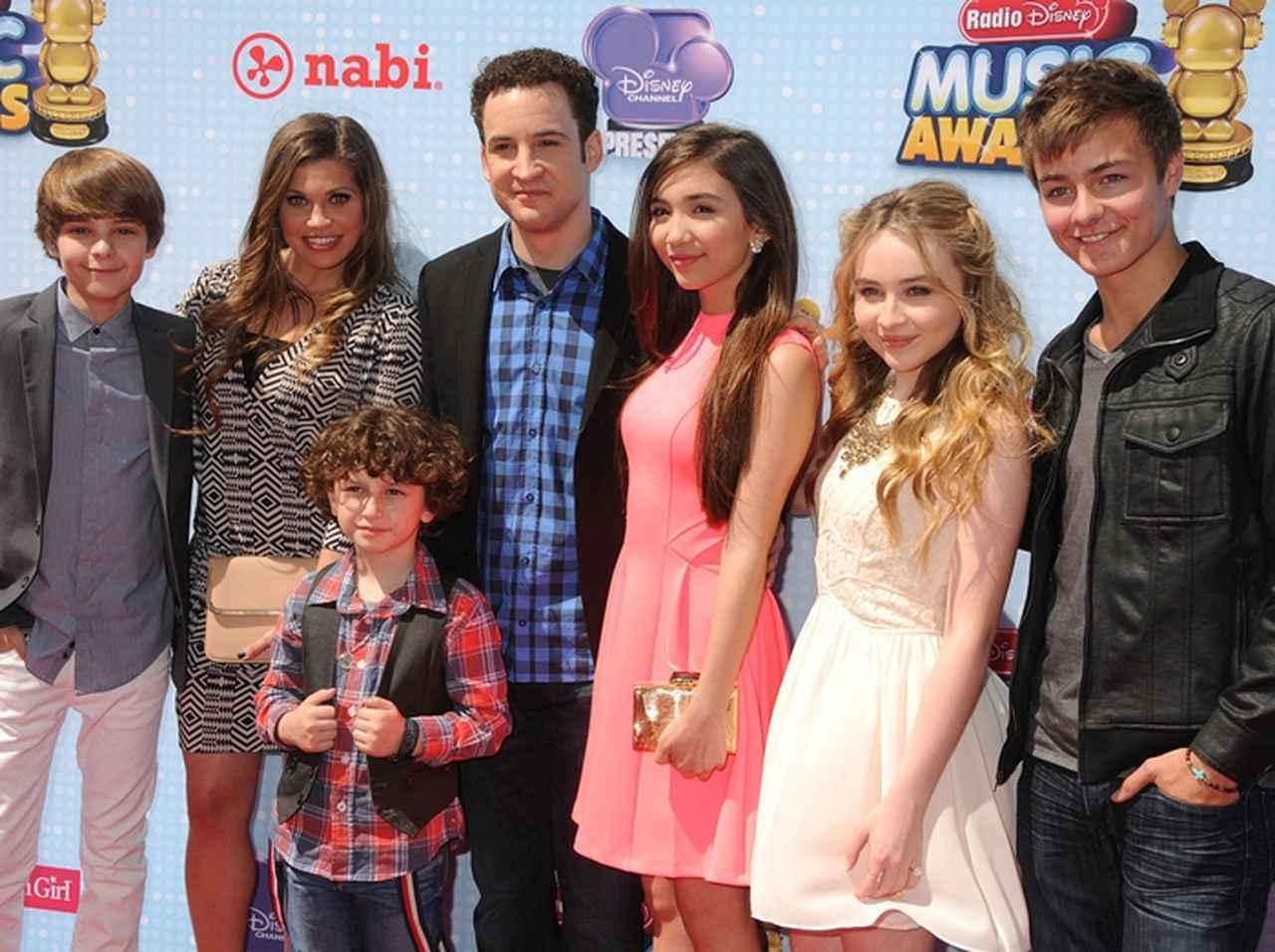 ペイトン・マイヤー(写真右)『ガール・ミーツ・ワールド』のキャストたちと