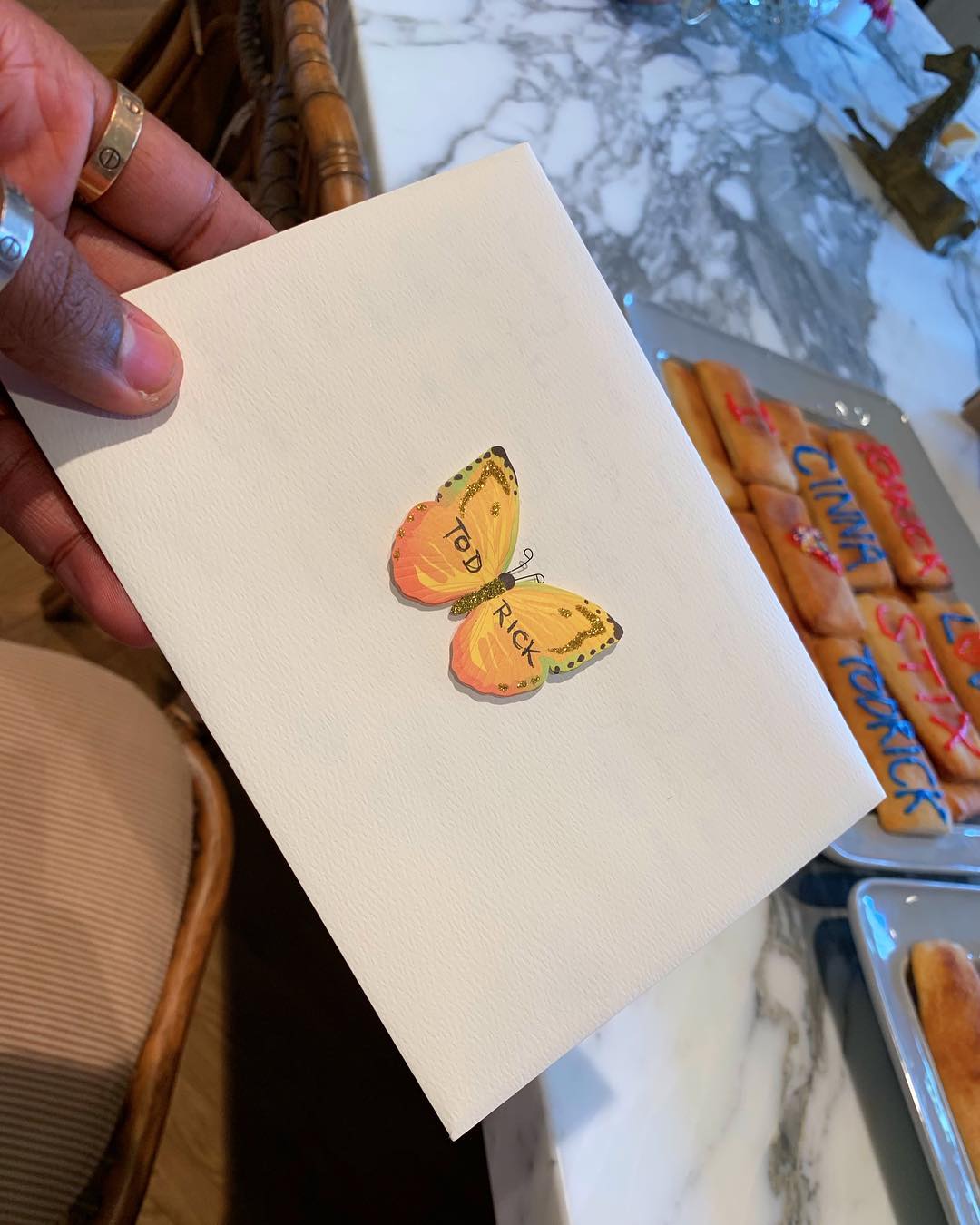 この時テイラーがトドリックに渡した封筒に描かれていたのは、黄色い「蝶」。じつは、ファンの間で、以前からニューアルバムのキーとなるのは、蝶のモチーフではないかと言われており、今回大切な友人の誕生日にも蝶のモチーフが登場したことで、その説が濃厚となった。