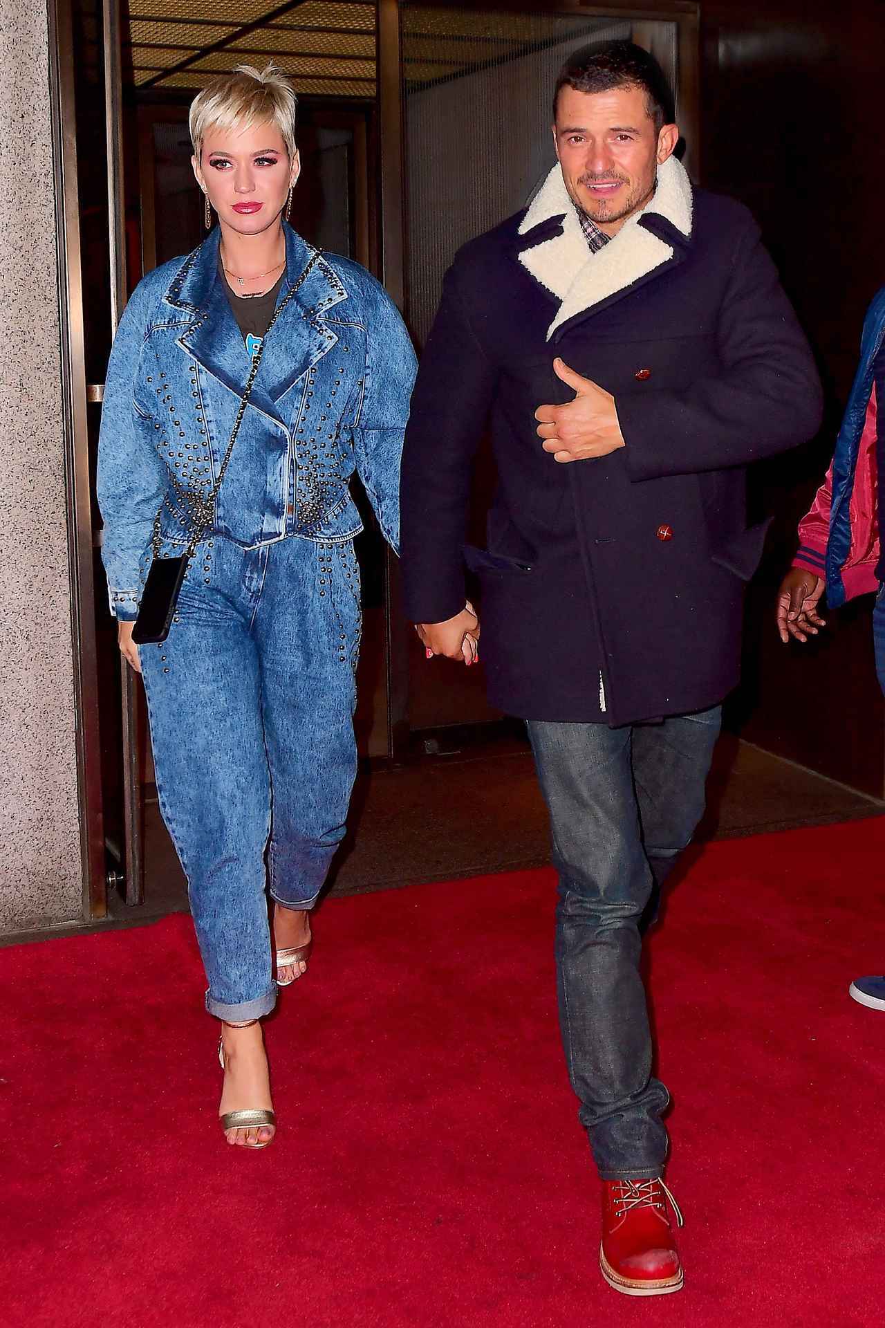 ケイティはオレンジのジャンプスーツ、オーランドは上下デニムのカジュアルな服装だった。