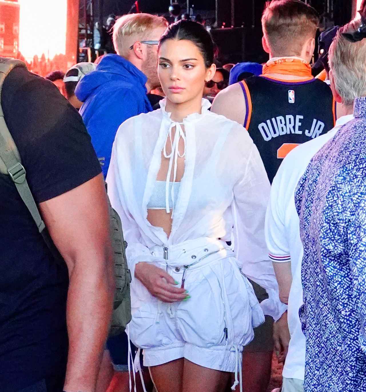 人気モデルのケンダル・ジェンナーは、ホワイトのファッションにすっきりまとめたヘアとシンプルなメイク。派手なグリーンのネイルがアクセントになっている。