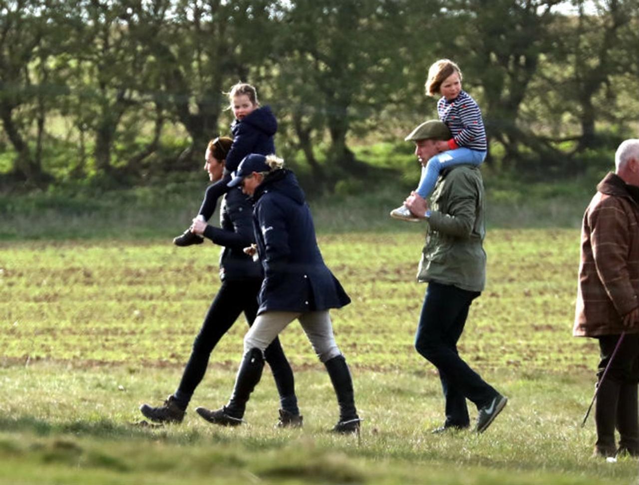 シャーロット王女を肩車するキャサリン妃。ウィリアム王子の肩にのっているのは、従姉のザラ・ティンダルの娘ミア・ティンダル。