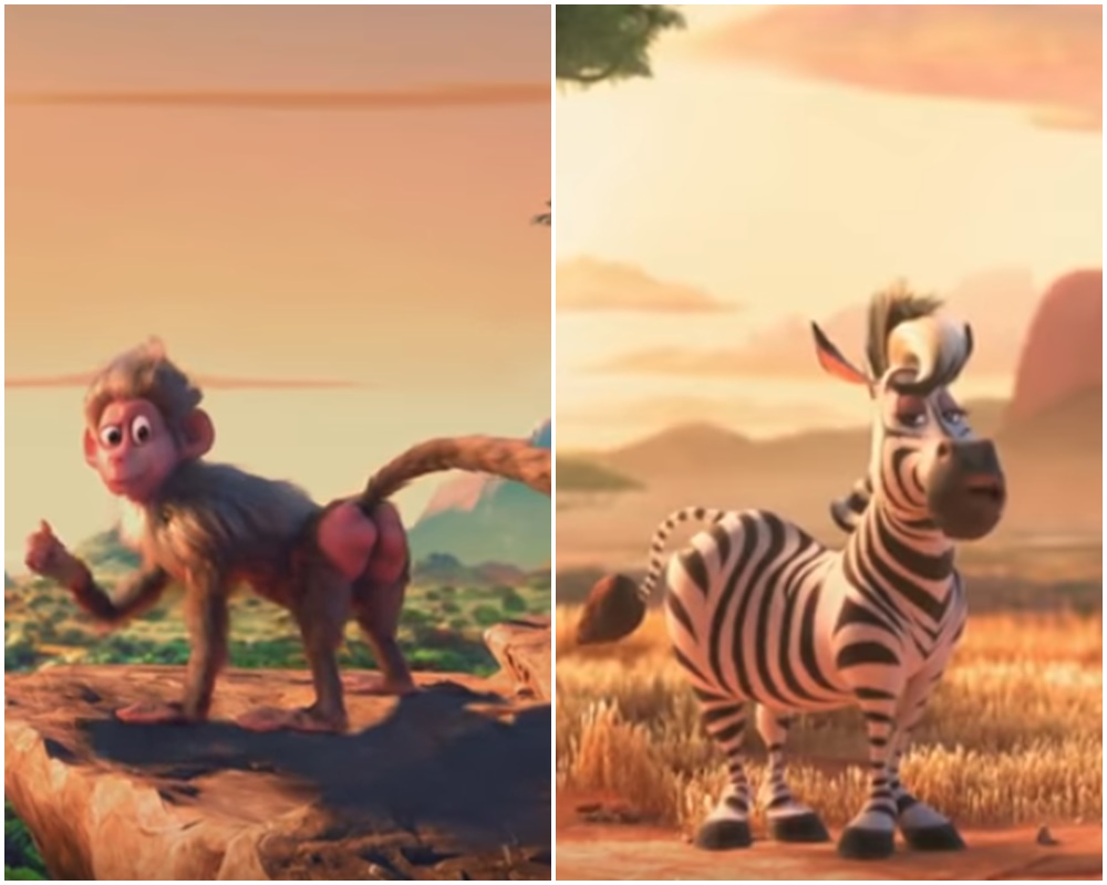 左がジャスティン扮するバブーンで、右がアリアナ扮するシマウマ。リルは“人間役”で登場する。