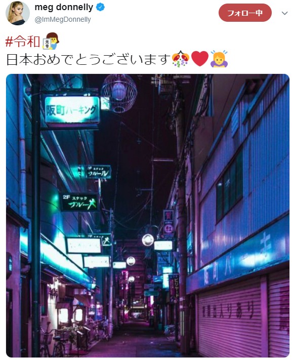 日本語での読み書きや会話ができるメグは、4月1日に「# 令和 日本おめでとうございます」と日本語でツイート。2018年の初来日時に自ら日本で撮った写真を添えて新元号制定をお祝いし、親日セレブらしさをうかがわせた。