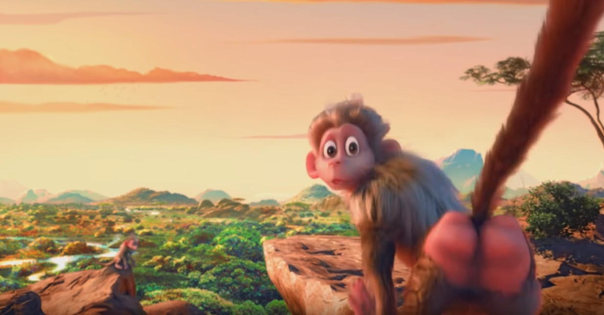 そしてカメラはバブーンのお尻の穴を通過して、アリアナ扮するシマウマの登場場面となる草原での次のシーンへと切り替わる…。