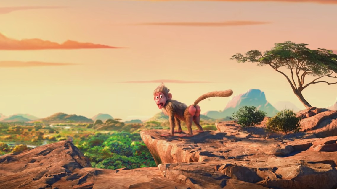 サル目の動物“バブーン(日本語ではヒヒ)”として登場するジャスティンは、まず第一声で「Hi,