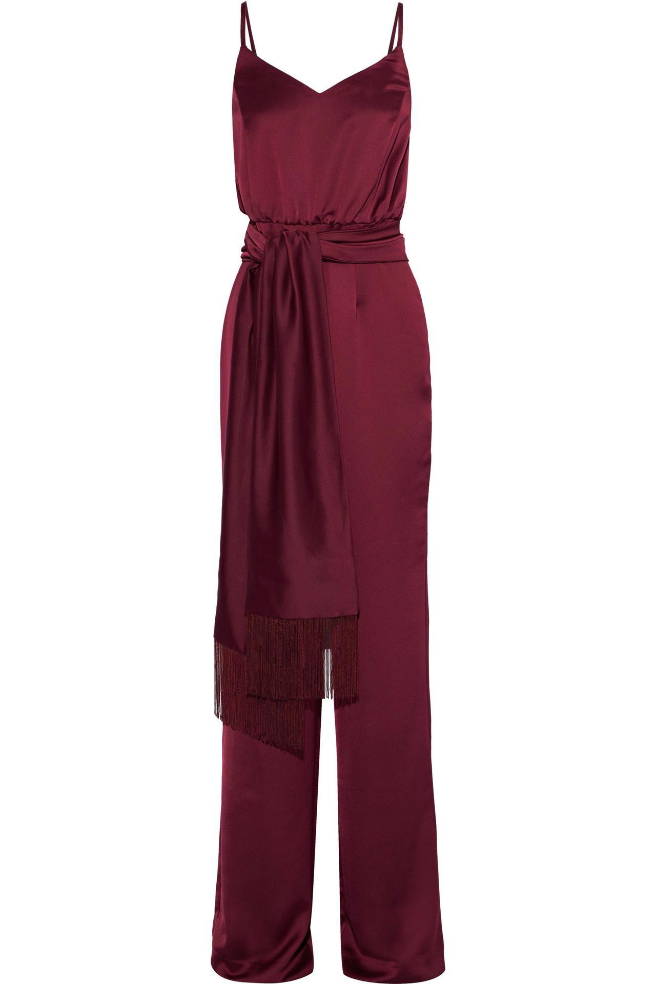 今季注目のジャンプスーツも、IRIS & INK(アイリス & インク)の艶やかなサテン素材が旬。ベルトはフリンジ加工になっていて、1枚でスタイリッシュな着こなしに。ベルトを取り外してシンプルに着用したり、手持ちのベルトを着けたりと、様々なスタイルが楽しめるアイテム。
