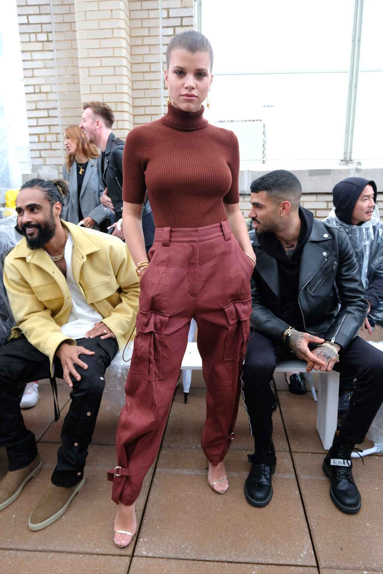 ファッションセンスが高く評価される人気モデルのソフィア・リッチーは、赤みブラウンのトップスに、3.1 フィリップリムのユーティリティ カーゴパンツをシックにコーデ。