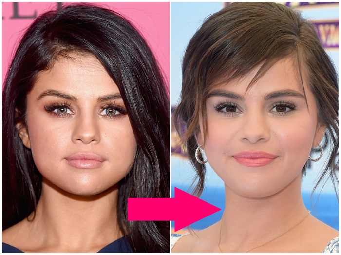 人気シンガーのセレーナ・ゴメスは、眉毛一本一本の毛流れをいかしたナチュラルな眉から、パウダーで幅を足したトレンドの太眉に。どちらも似合っていてかわいいけれど、トレンドの太眉のほうがやわらかい印象。