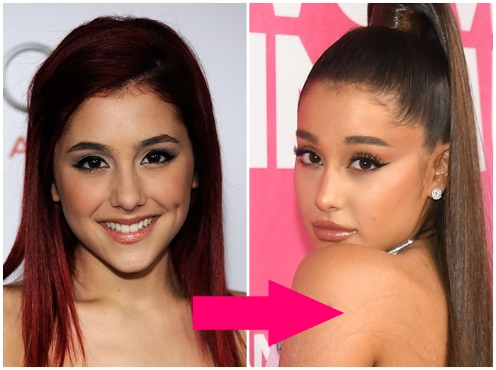 人気シンガーのアリアナ・グランデは、以前も太眉だけれど眉山は高く、あどけない印象。いまは眉山部分をカットして平行眉に。眉が平行な分、カーブのある目元がパッチリと強調されて見えている。