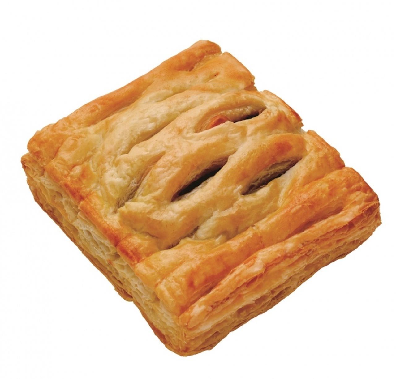 あらびきジューシーなフランクフルトと、ハーブの香りが効いたBBQソースをサクサクのパイ生地で包んで焼き上げた。(216円)※価格は全て税込